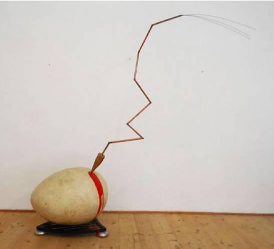 Ce qu’on définit le temps, c’est un devenir. L’œuf est un objet-devenir. Les animaux étrusques plutôt un devenir passé. Il se peut que l’avenir nous réserve des devenirs-robots. Pourquoi pas ? Le fait est, que depuis Einstein, l’espace-temps forme une unité. Difficile à calculer combien de robots y trouveront leur place sans écraser les œufs, ou le temps, ou l’espace.