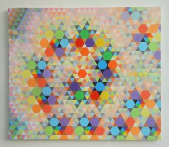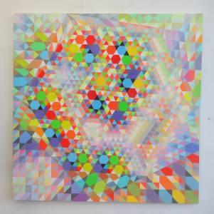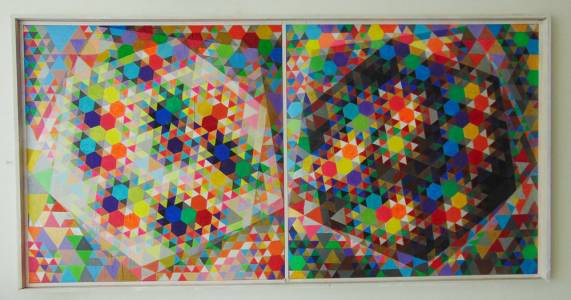 Cualcuno mi fa riferimento a Vasarély, sopratutto in Francia, dove questo grande artista ungarese viveva, e di cui aprezzo molta la sua fase “preindustriale”. Il fatto che una pittura si presenta attraverso una frammentazione spinta puo avere diversissime ragioni. Pensiamo solo ai pointilistes francesi e compariamo li a Klee, Jasper Johns o Vasarély … Mi avventuro in ambito più modesto, ma rigoroso.