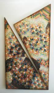 Qualcuno, vedendo questi lavori mi dice “anch’io faccio dei patchwork”. Non è il mio caso, tutto è programmato. Se uno si da un quadro di regole sovrapoponendo 4/5 parametri raggiunge una complessità humanamente non derl tutto controllabile e pre vedible, ma ordinata. False patchwork.