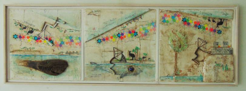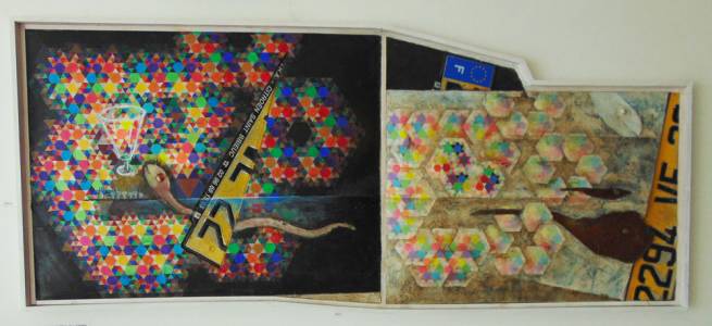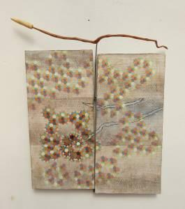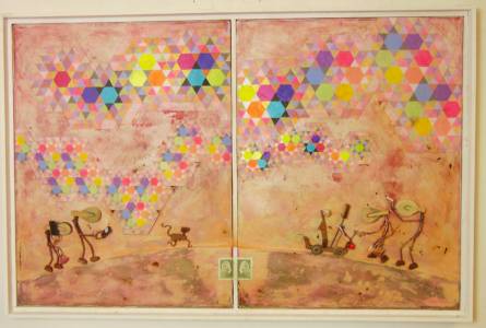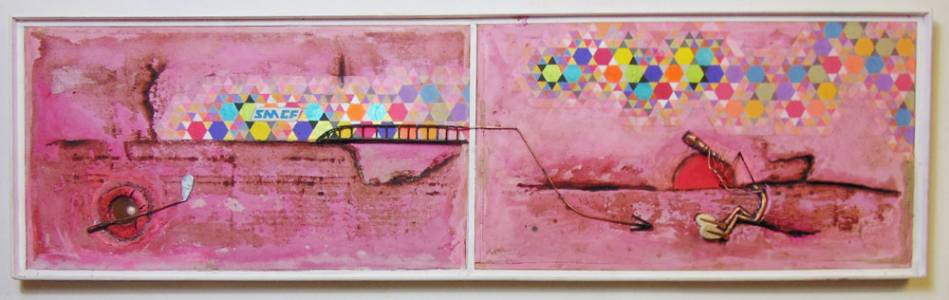 acrilico su carta su legno